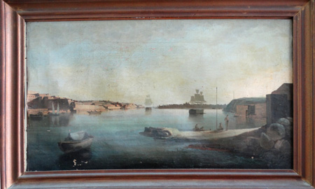 G.Gianni 1871 Oil on Canvas Valletta Waterfront 74 X 38cms |