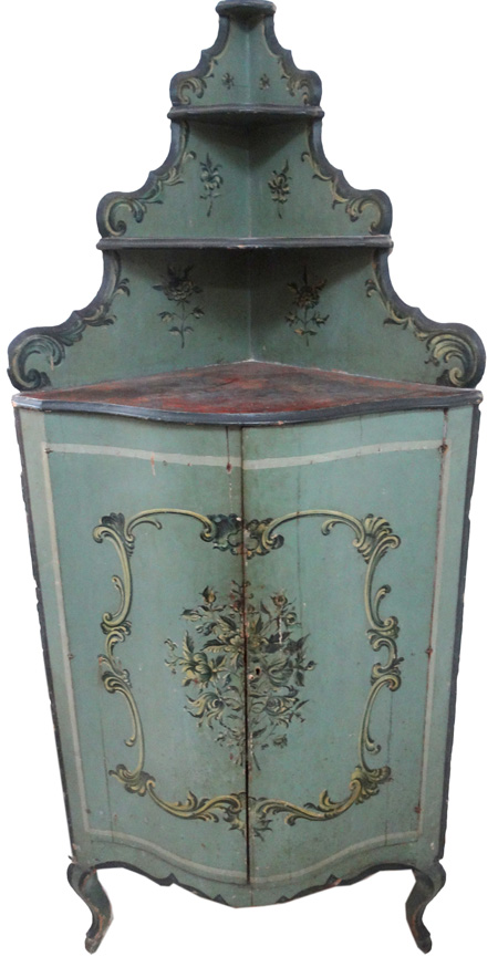 18thC. Maltese Painted Corner Cupboard |