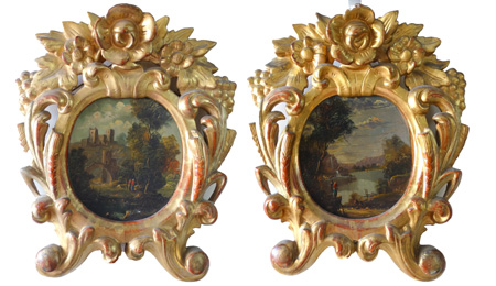 Large Pair 18thC. Oval Oil Paintings Capriccio |