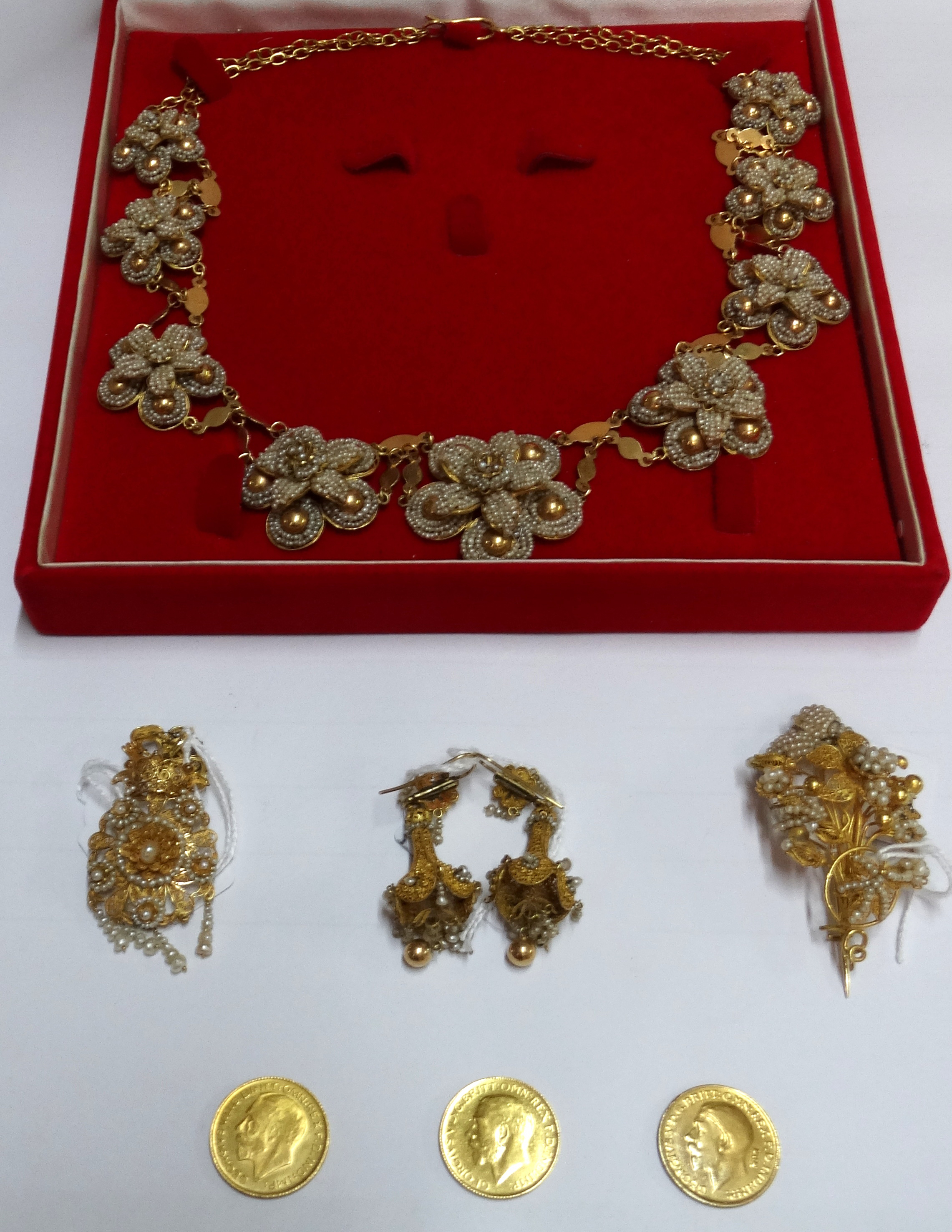 Antique Gold Collier with Seed Pearls and Gold Sovereigns |