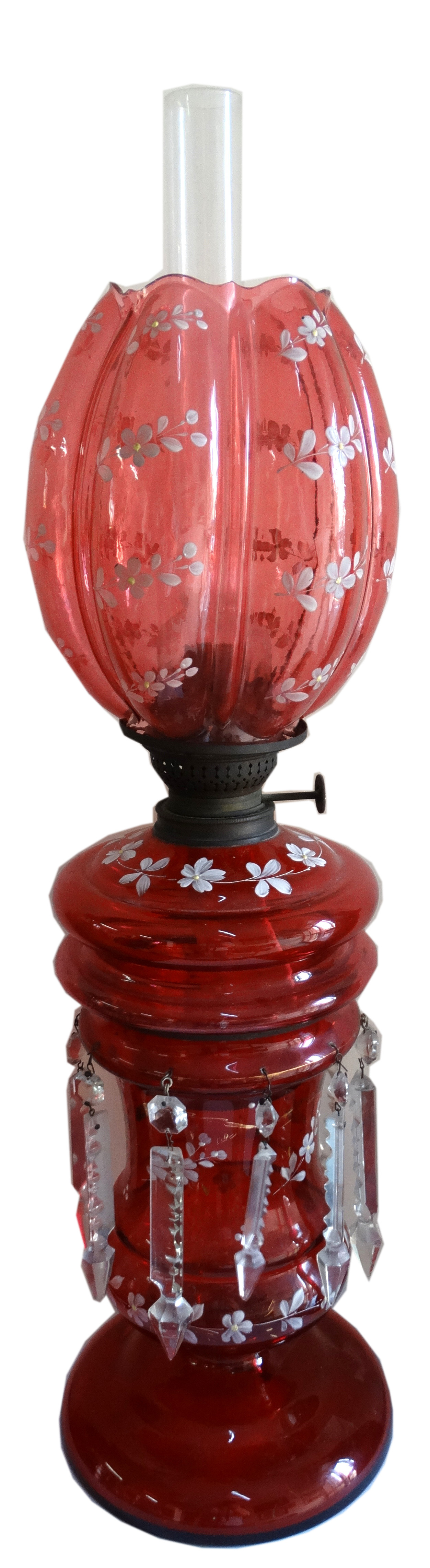 Antique Cranberry Glass Oil lamp & Shade |