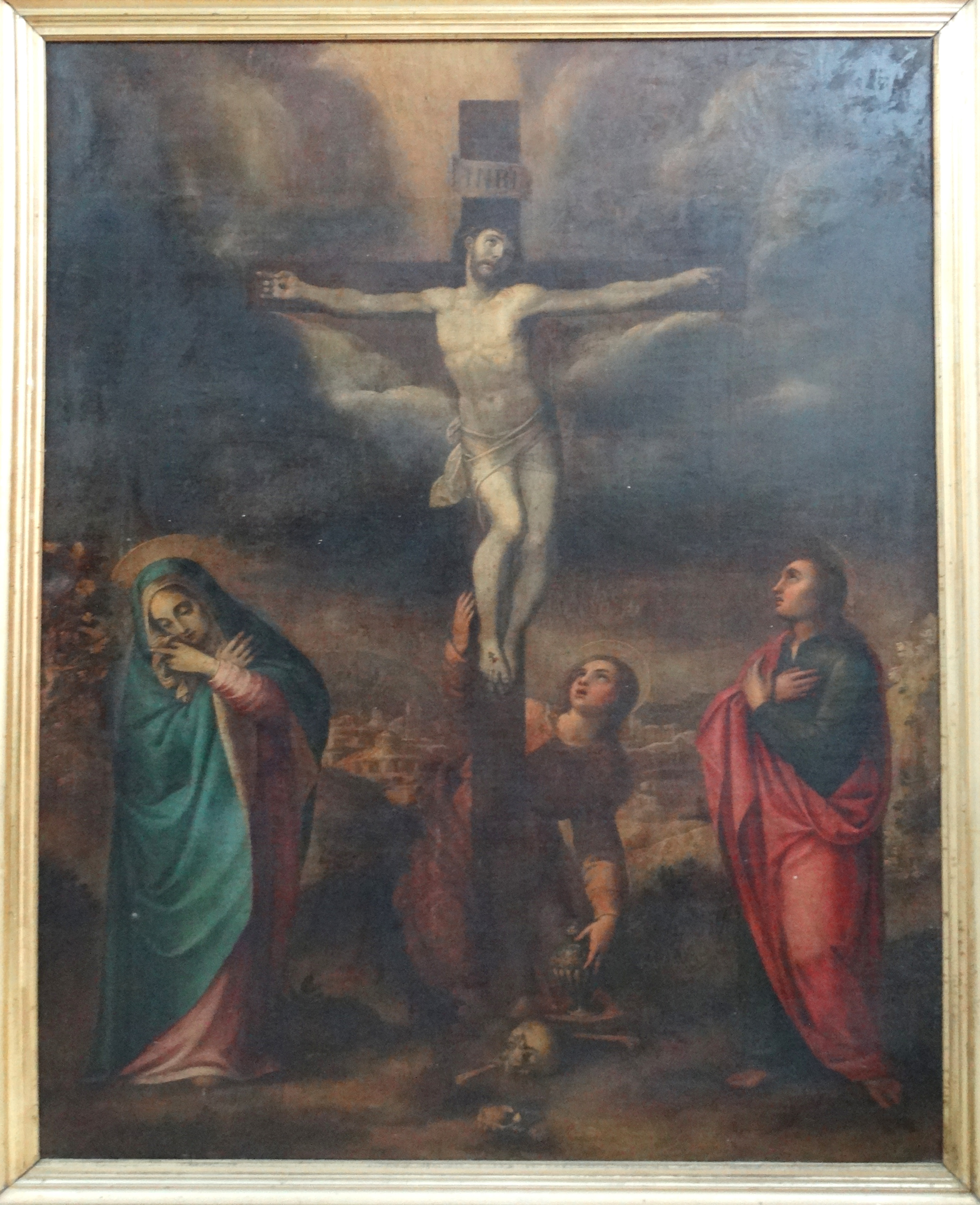 Large 18thC. Oil Painting The Crucifixtion |