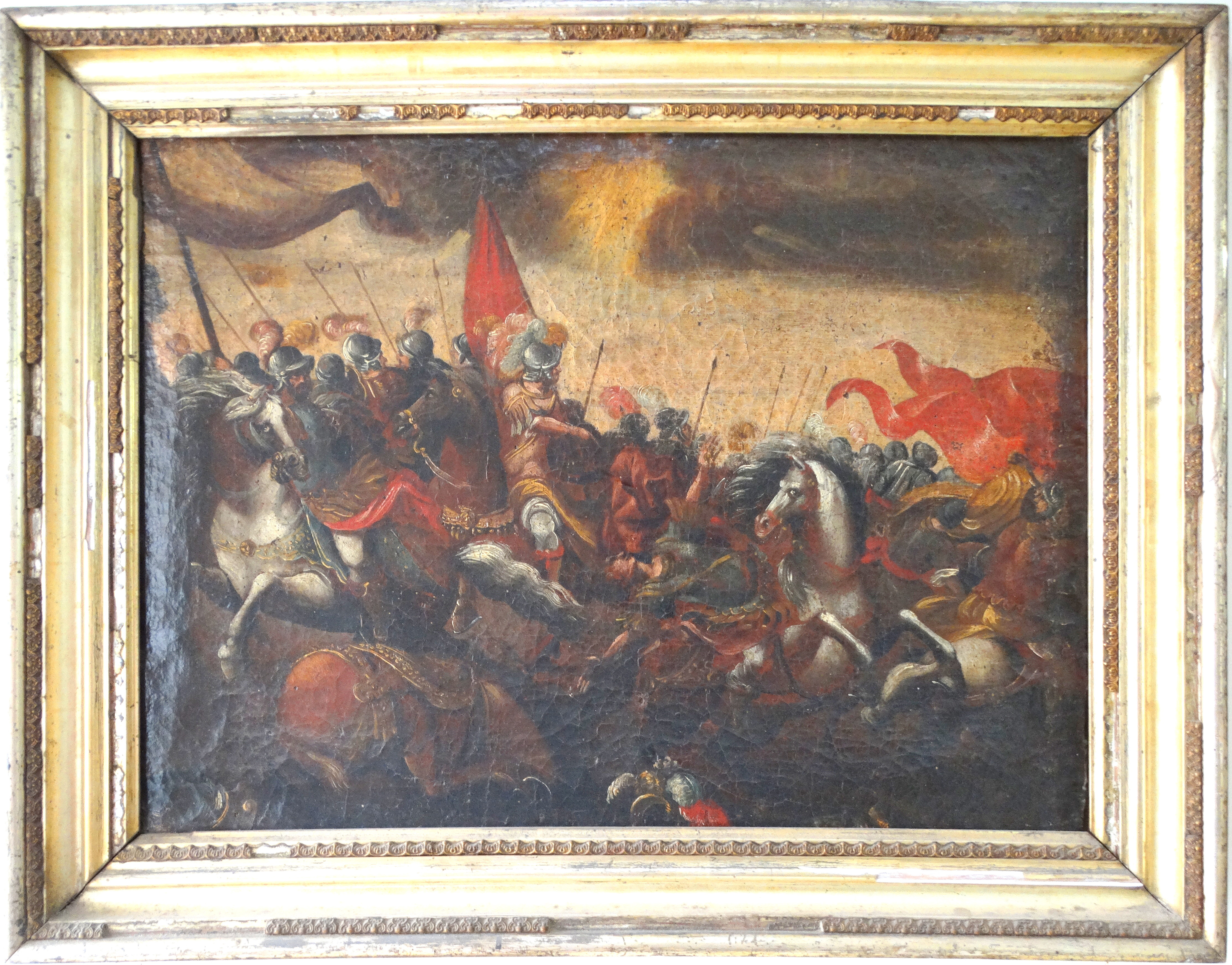 Small 19thC. Oil painting Battle Scene |