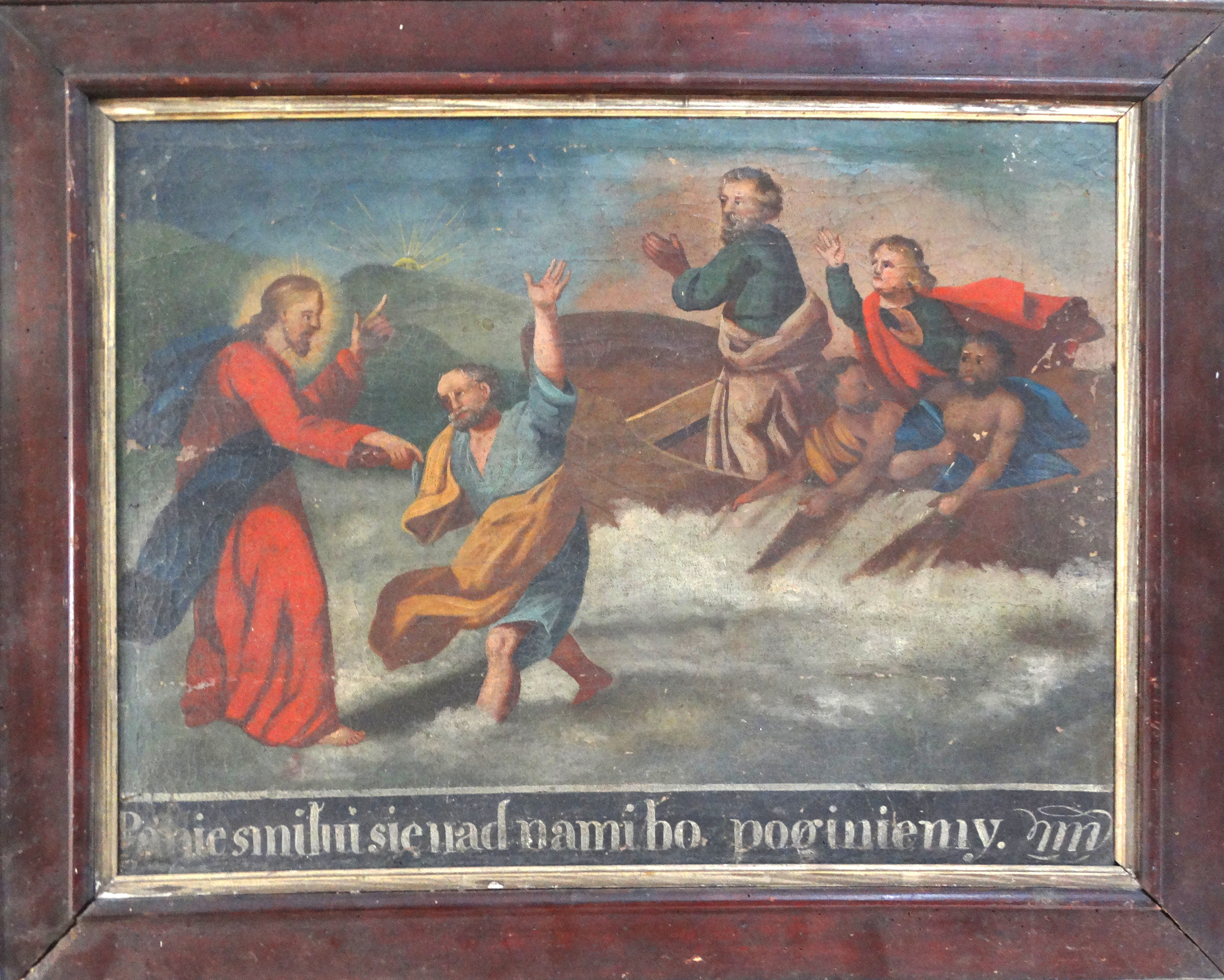 17thC. Oil Christ Walking on The Sea |