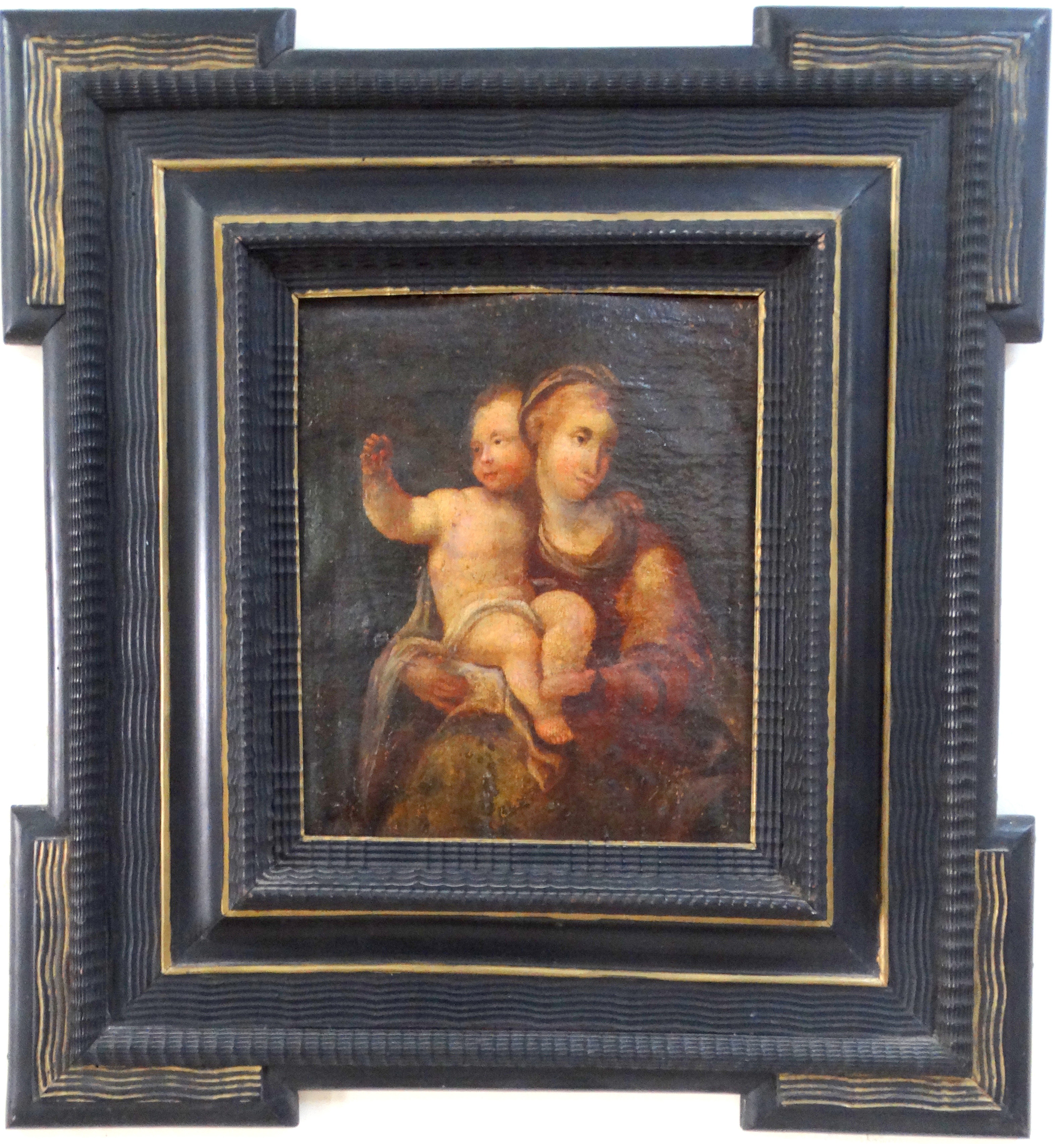 18thC. Oil Painting Madonna & Child in Ebonised Frame |