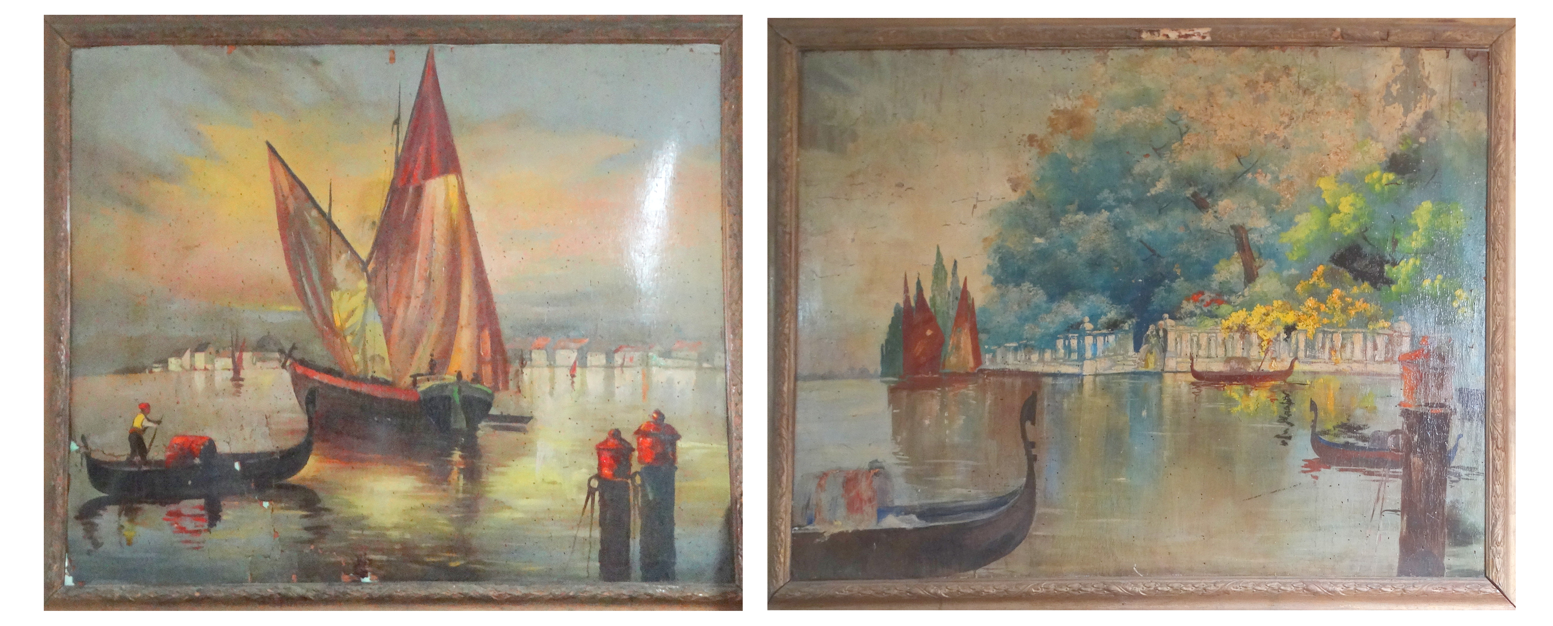 Attributed Emvin Cremona Large Pair of Paintings Venice Scenes |