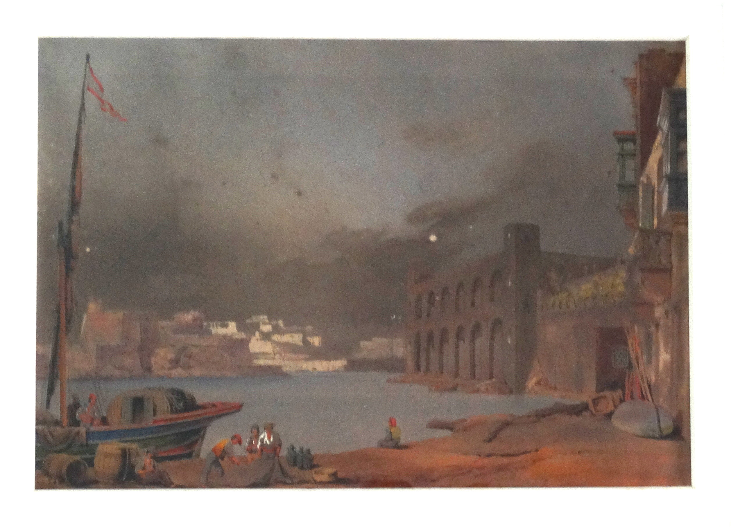 Attr. Giovanni Schranz Oil Painting Tigne with Valletta Background |