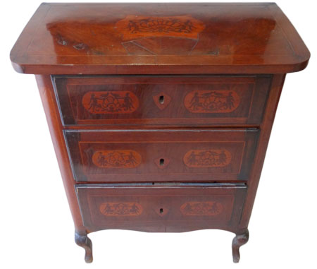 Small antique chest of drawers with figures and bird motifs |
