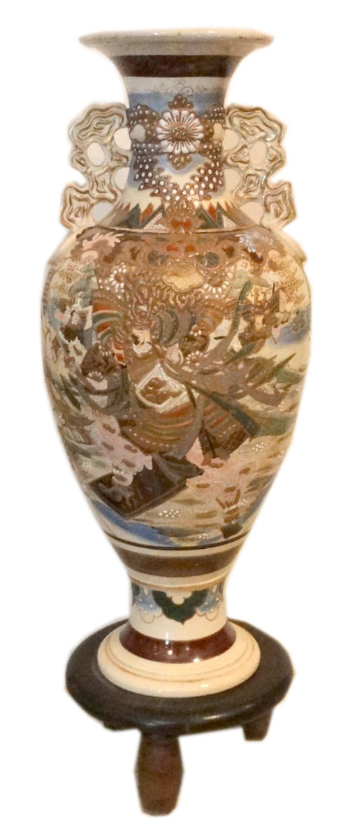 Large antique Satsuma vase on stand |