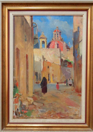 Edward Caruana Dingli: Oil painting Maltese Village Scene