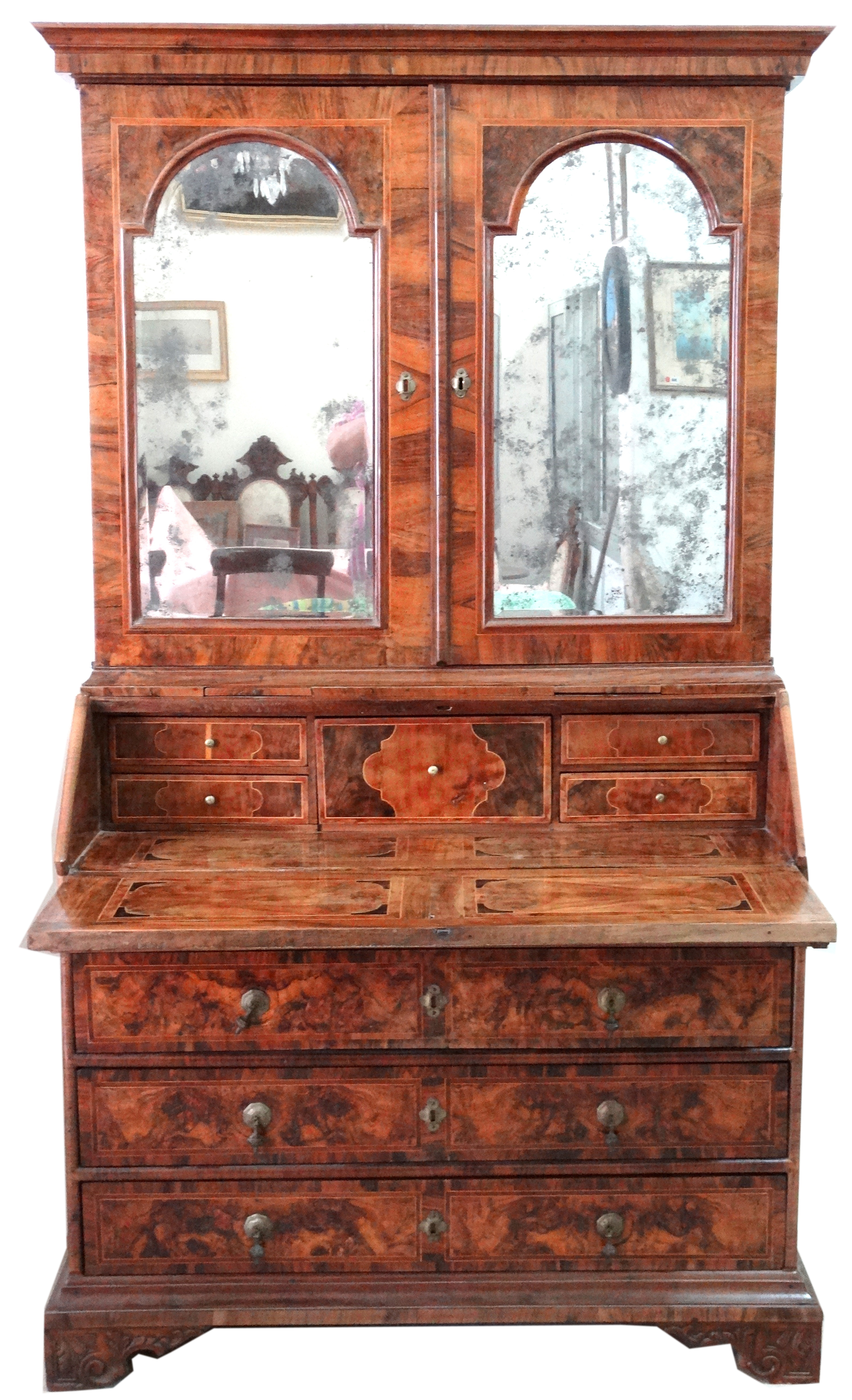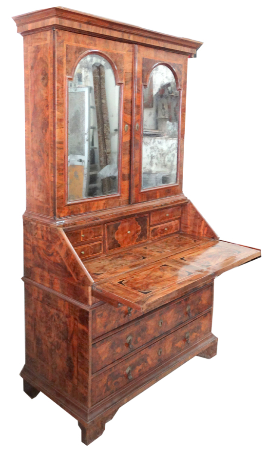 18thC. Walnut and Fruitwood veneered Bureau Bookcase Bologna