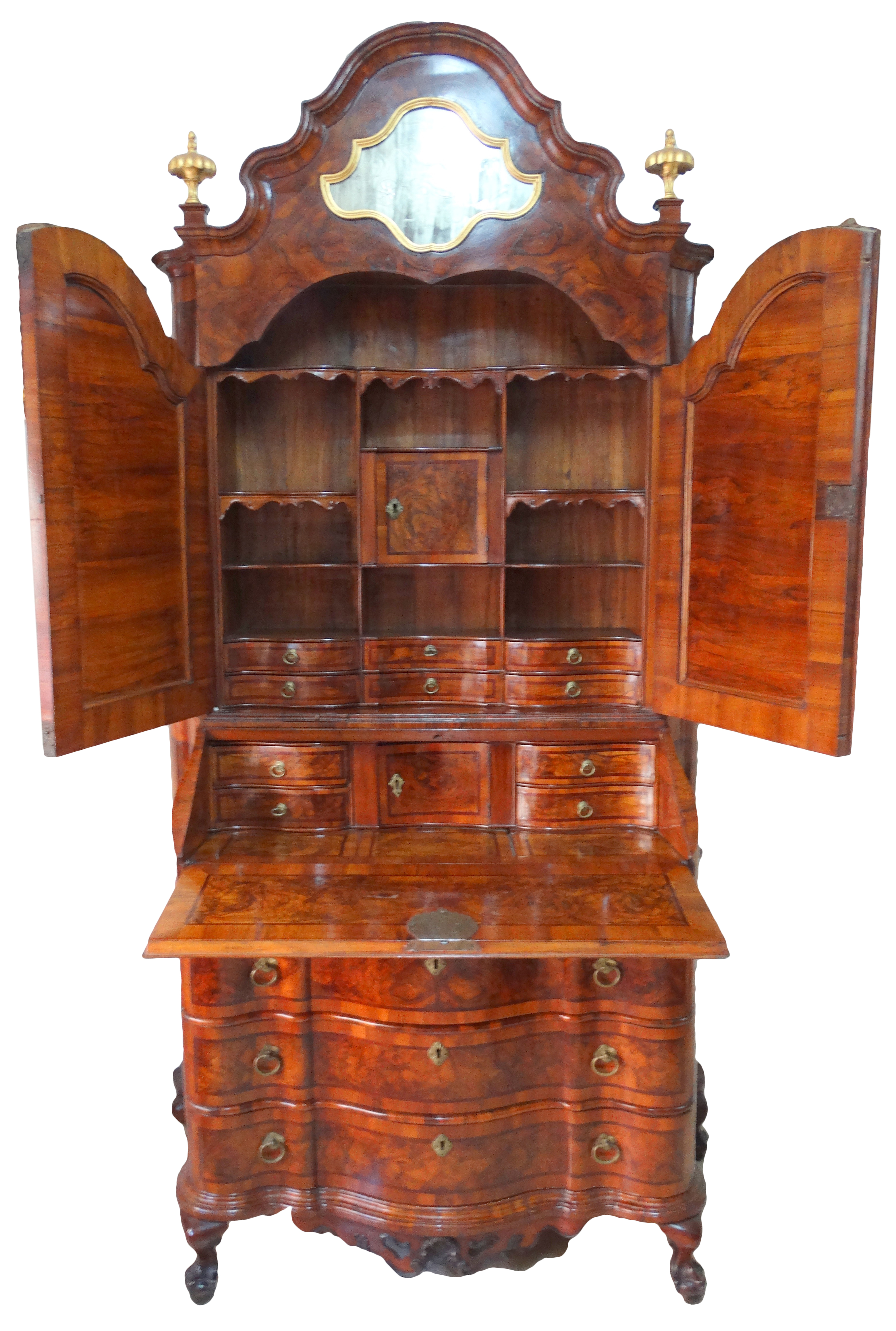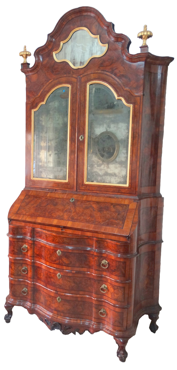 18thC. Venetian Bureau Bookcase in Walnut and Concave Sides |