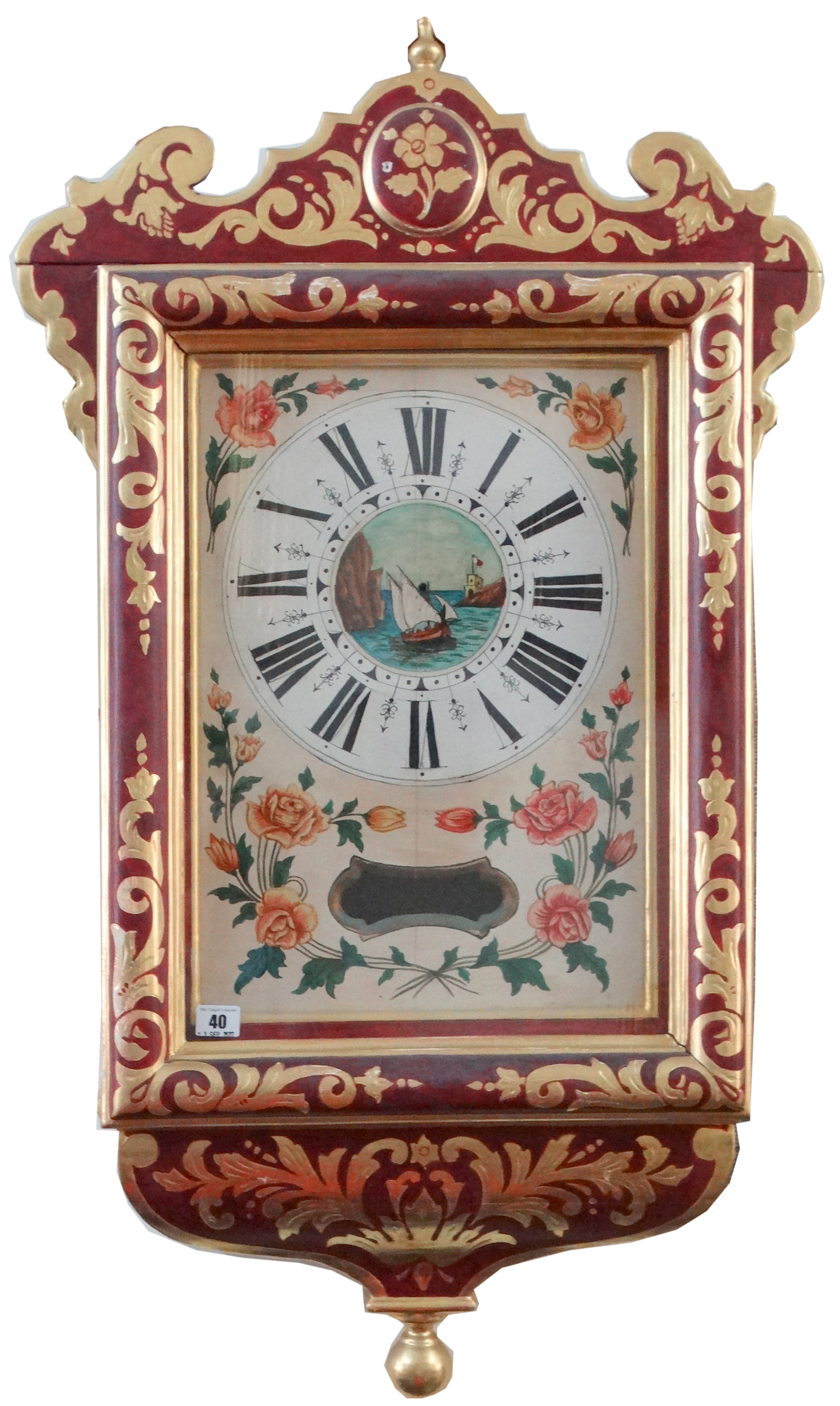 Maltese Red & Gilt Wall Clock