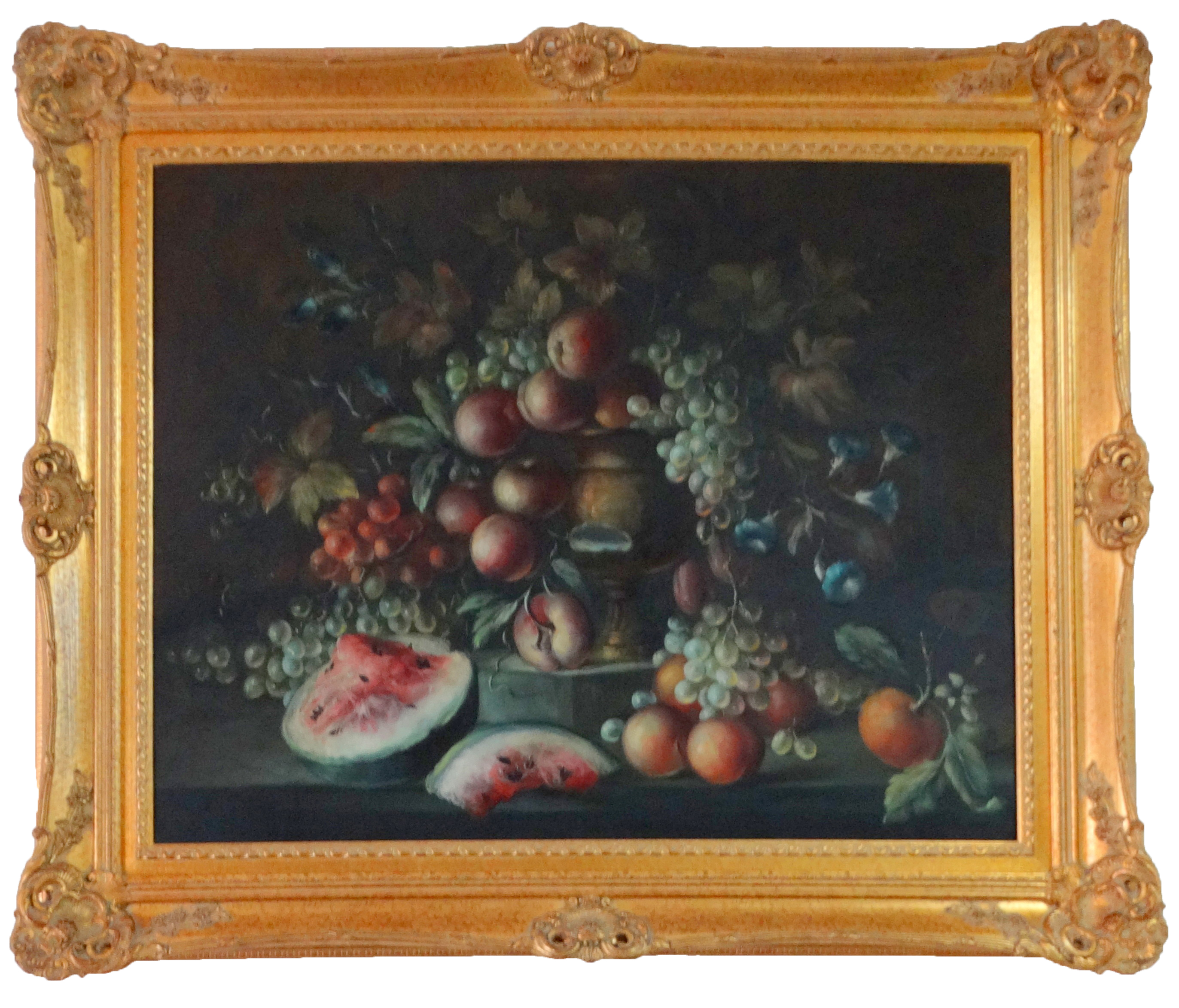 Pair Antique Oil Paintings Still Life of Fruit |