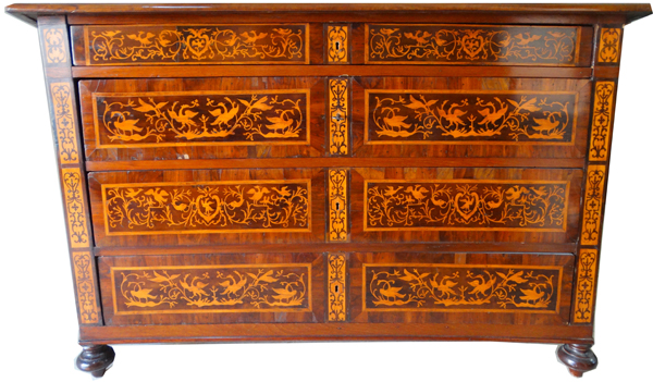 17thC. Maltese Chest of DrawersDecorated with Lacework and Birds of Paradise