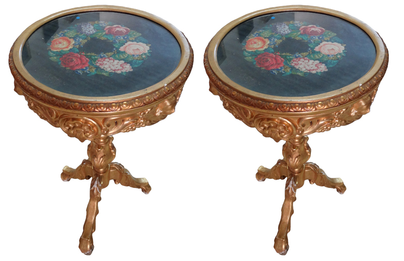 2 Antique Carved Gilded Round Tables |