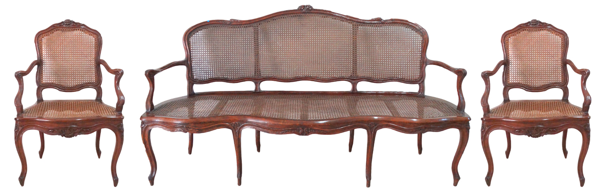 Walnut Framed 3 Piece Bergere Suite |