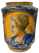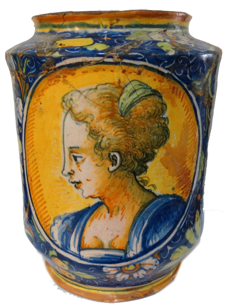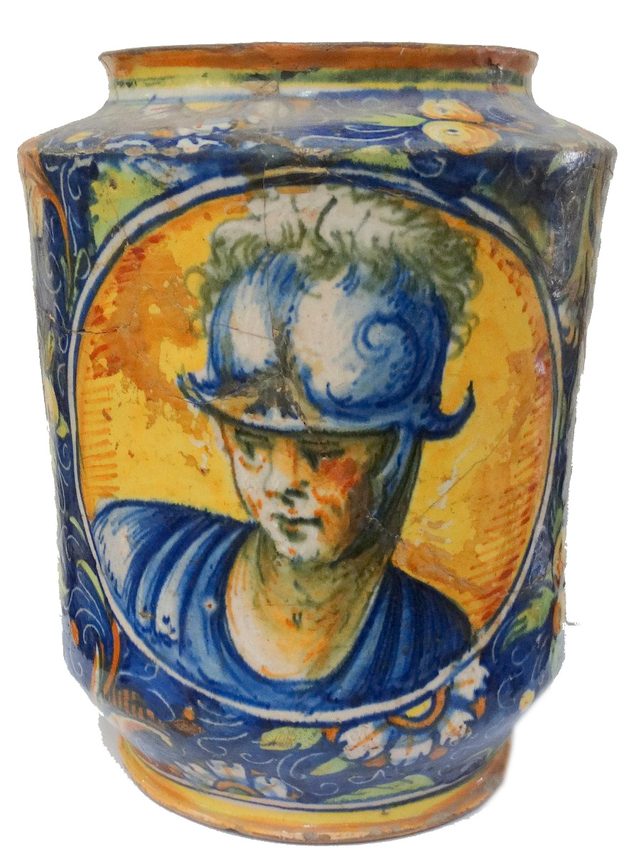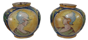 Pair early 19thC. Majolica Caltagirone Bocci (Front & back) |
