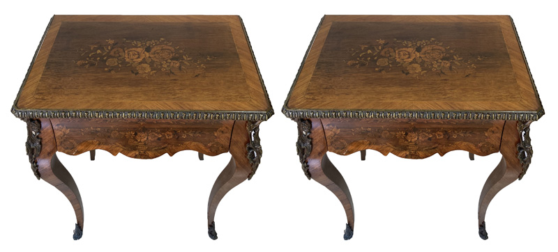 Antique Inlaid Walnut 3 Door Cabinet with Marble Top |