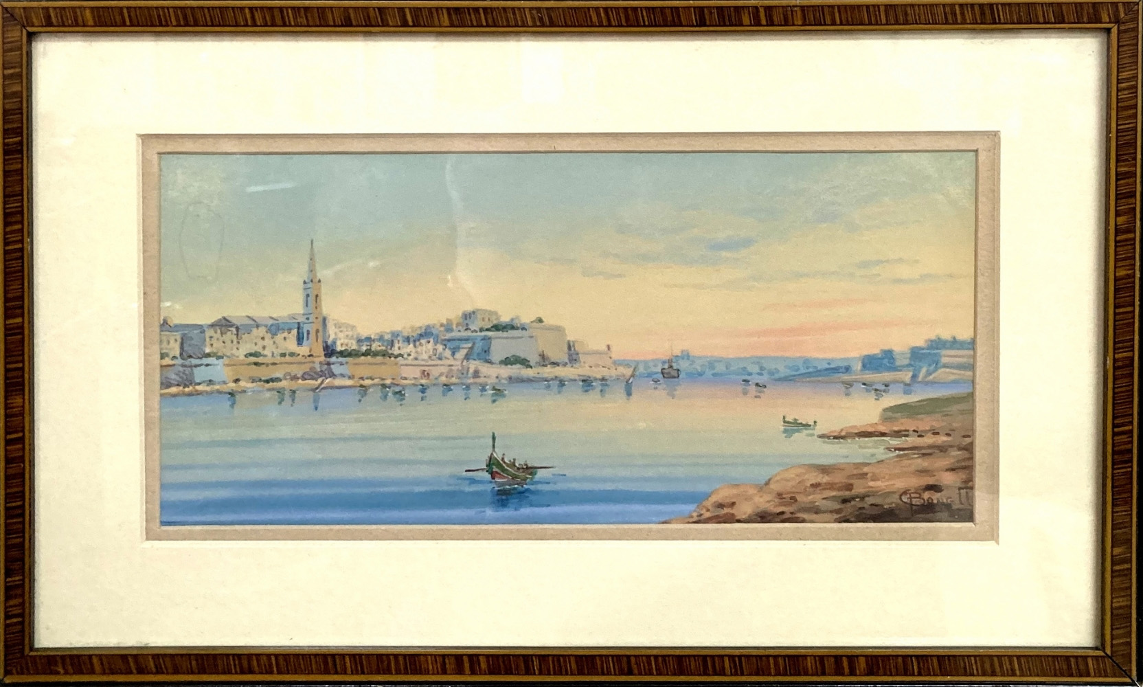 G.Gianni 1885 Oil Malta Harbour Scene 53 X 21cms
