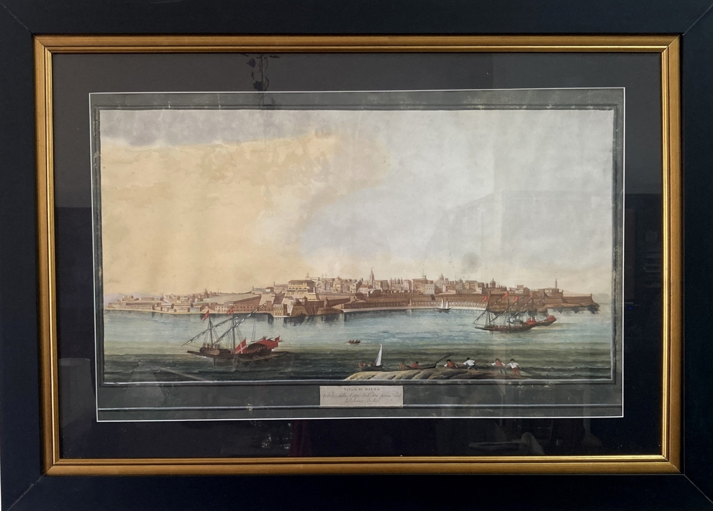 After Pullicino Coloured Etching Veduta Della Citta Valletta |