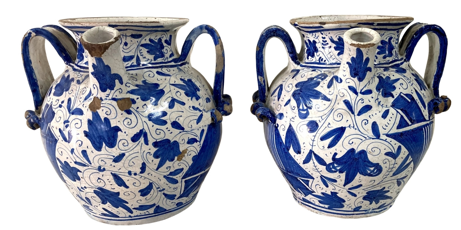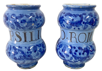 Pair 17thC. Maiolica Wet Drug Jars c 1680 |