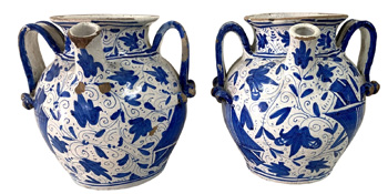 Pair 17thC. Montelupo Maiolica Wet Drug Jars c1670 |